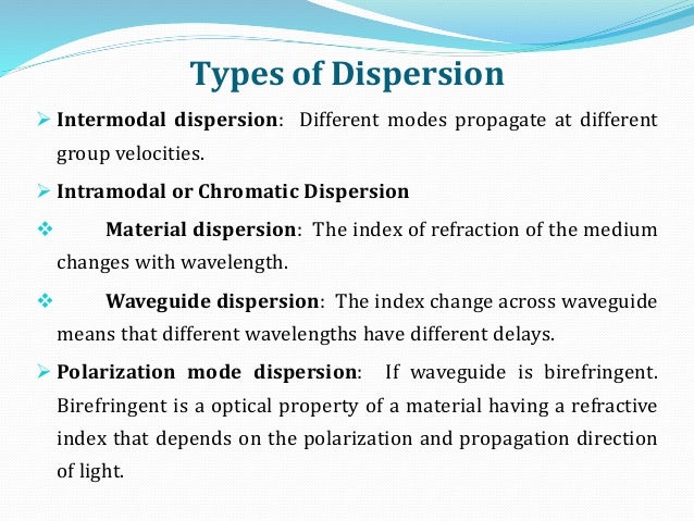 This dispersion is due to finite bandwidth of the signal. Material dispersion: This is due to intrinsic properties of the material, . Dispersion Loss As an optical signal travels along the fiber, it becomes increasingly distorted. In this video, I will explain what is Chromatic Dispersion. This video explains the causes and effects of dispersion in optical fibers and the different types of dispersion along with some of the solutions proposed to.
